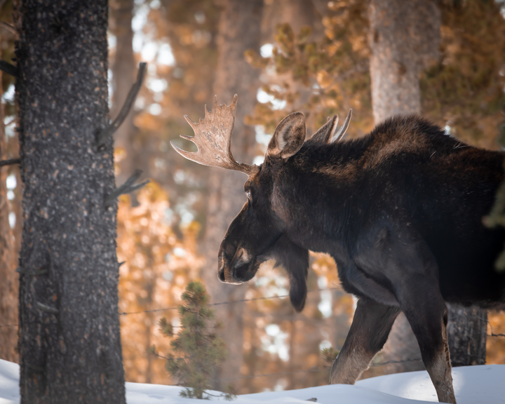 Methods to account for this “imperfect detection” range from simple correction factors to complex models of detection probability, as do the methods for counting animals. Count methods sometimes rely on direct animal observation (as in aerial surveys), however, all animals — large and small — leave traces of their presence as they traverse the landscape. The prevalence of these traces is fundamentally related to the number of animals that left them, and I am particularly interested in leveraging the information in these clues to estimate wildlife population sizes. I am applying this concept to estimate the population size of moose using only information animals left behind: tracks, scat, and hair left in the snow that I collected at hundreds of sites throughout Bighorn National Forest.
